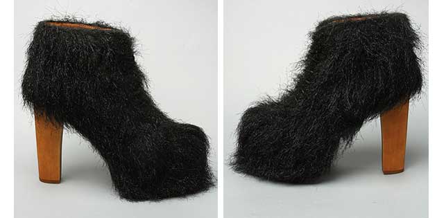 This is the latest version of the famous boot, and as you can see… well, they’re now covered in hair. Yes, hair. Don’t worry, it’s fake hair… but it’s still hair.