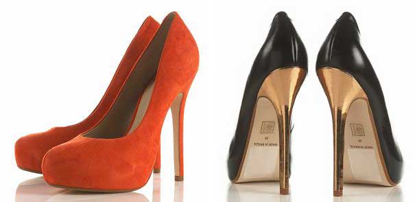 After a disappointing start to the year, Topshop is definitely starting to pick up its game in the shoe department. The orange suede versions of these ‘Sylvia’ platforms have already sold out online, despite only becoming available last week, but you should still be able to find them in some stores, at least. The taupe and black versions (seen here from the back, with a gorgeous gold stiletto heel) were still available at the time of writing, but may not be for too much longer: this is a deceptively simple shape which has a lot of impact, and as orange has been so very hot (no pun intended) this summer, I’m not surprised that these appear to be popular.